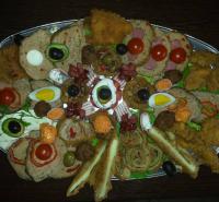 Rulada cu ou, rulada cu cabanos,gordon bleu,chiftelute,cascaval pane,piept de pui crispy, ciuperci umplute,rosii cherry,telemea,masline,castraveti,ou fiert,...